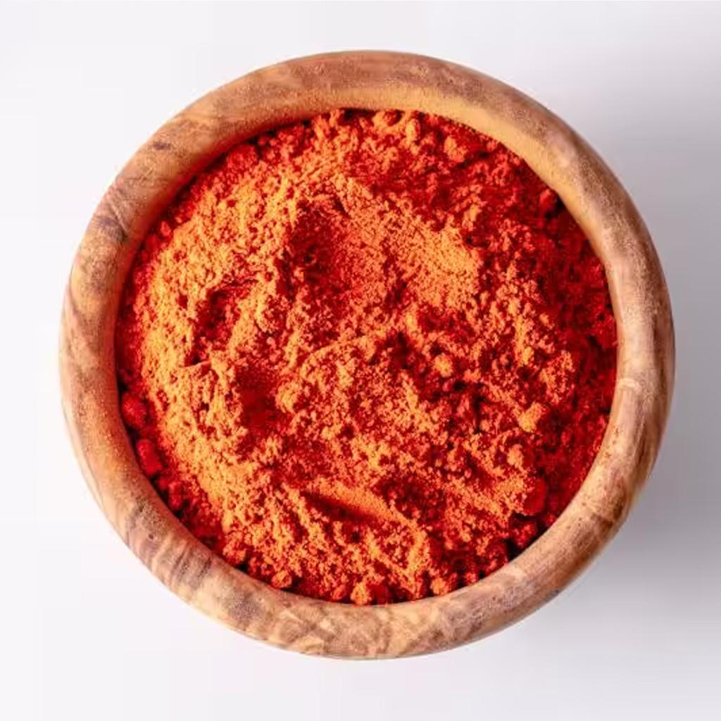 Suche i mielone owoce papryczki chili. Czerwono-brazowy proszek ma smak srednioostry, lekko owocowy i delikatna strukture. Produkcja naszego proszku chili rozpoczyna sie od starannego doboru i zbioru dojrzalych czerwonych owoców papryczki chili. Nastepnie sa one delikatnie suszone, aby zachowac ich bogaty, przyprawowy smak i jaskrawa, czerwona barwe. Na koniec suszone owoce sa drobno mielone. Nasz mielony chili moze byc uzywany w wielu potrawach. Nadaje ziólowy pikant zupom, duszonym miesom, sosom i marinatom. Dodaje takze smaku potrawom grillowym i nadaje autentyczny smak meksykanskim lub indyjskim daniom. Kropelka proszku chili dodaje takze nieoczekiwana ostrosc smoothiom lub deserom czekoladowym.